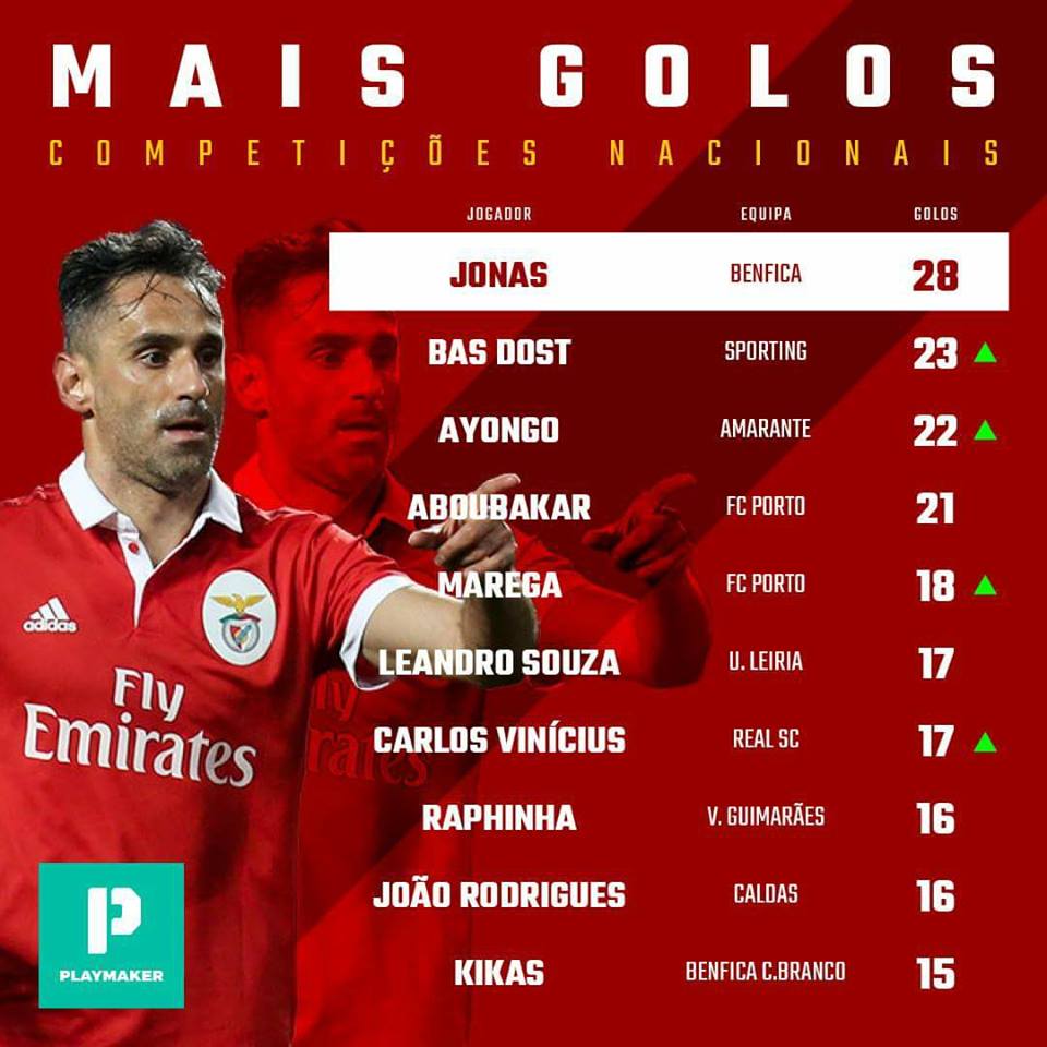 O playmaker stats elaborou uma lista com os melhores marcadores em todas as provas nacionais, e para já, Ayongo surge em segundo, numa lista liderada pelo avançado do Benfica Jonas, com 28 golos apontados. O ganês está à frente de nomes como Marega, Aboubakar e Raphinha. Confira a lista, em baixo:
