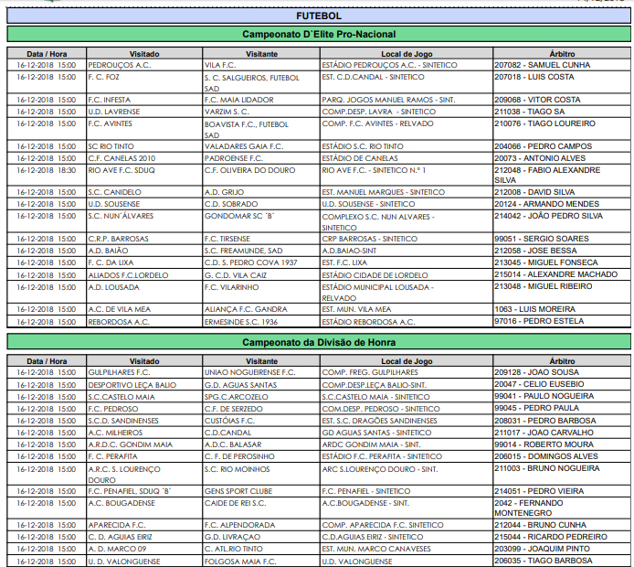 Os jogos da Elite e da Honra da AF Porto realizam-se este domingo, com início às 15h00, à excepção do Rio Ave B vs OLiveira do Douro, que se disputa mais tarde (18h30). Confira os jogos, em baixo: